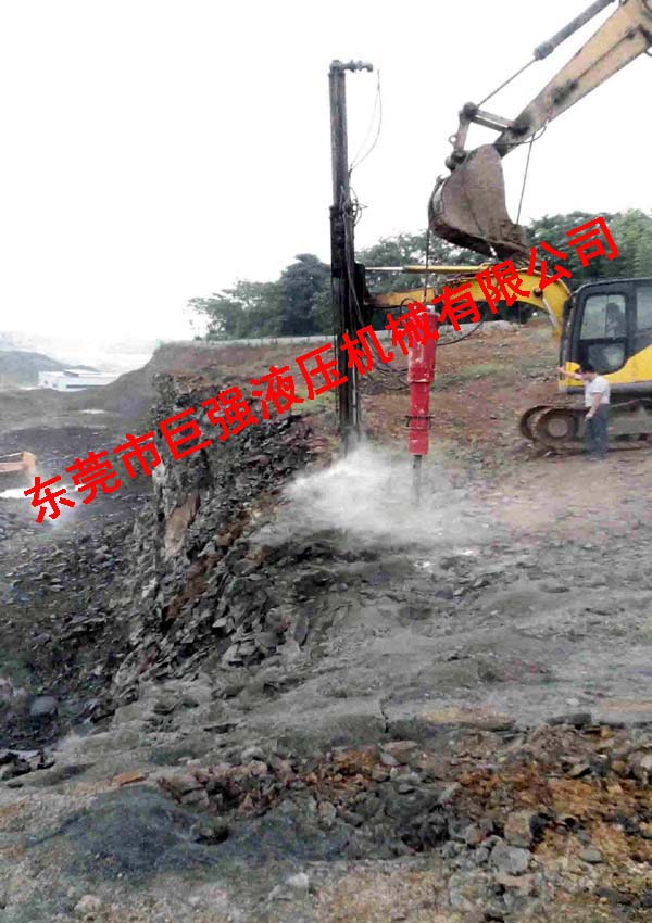 日前,苏先生从东莞市巨强液压机械有限公司购置机载劈裂机,主要用来分解致密玄武岩(玄武岩体积密度为2.8~3.3g/cm3,致密者压缩强度很大,可高达300MPa,有时更高),以往开山碎石,可以火工药品爆破,后来采用挖掘机破碎岩石,然而遇到致密岩石时破碎锤破碎效率低下,开采成本太高。