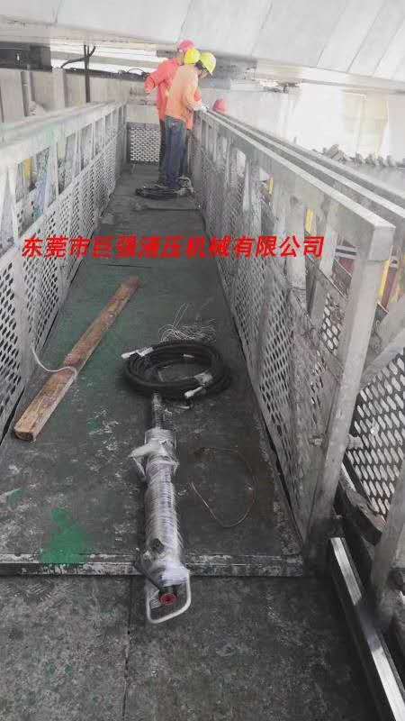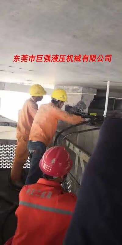 巨强劈裂机助力广州南沙大桥施工。3月2日,广州番禺中交二航局负责施工的广州南沙大桥桥墩拆除项目,施工人员开始用风镐破,桥墩结构为C50高强度混泥土,网状纤维,钢筋混合构件,风镐破碎效果非常不理想。后来使用我们巨强液压劈裂机,使用时先在桥墩上钻42毫米孔,孔钻好后放入液压劈裂机,10秒钟左右桥墩就裂开了,拆除效率是风镐的5倍以上,施工人员干活更轻松,没有使用风镐那么辛苦。后来整个拆除桥墩的工程历时1个月左右,用的都是用巨强劈裂机拆除,在南沙大桥通车前顺利完成所有桥墩的拆除工作。