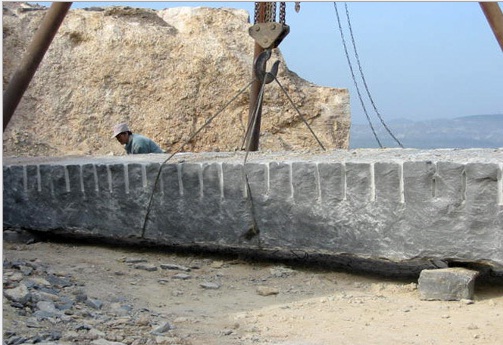 1.1用凿岩机在岩石上钻孔,钻孔直径取决于劈裂机楔块组件工作部分的外径大小,而楔块组件的大小取决于现场的岩石大小,岩石体积较大,选用大直径楔块组件,还可小直径多孔,岩石体积较小,选用小直径楔块组件。钻孔深度一般为300一400mm。钻孔时注意,矿石钻孔的方位应垂直于孔所在的表面,孔的大小应与劈裂机的直径相适应,钻孔的深度比楔块组件插人长度深110一150mm。严禁打斜孔和浅孔,不应在受力不好的位置打孔。
