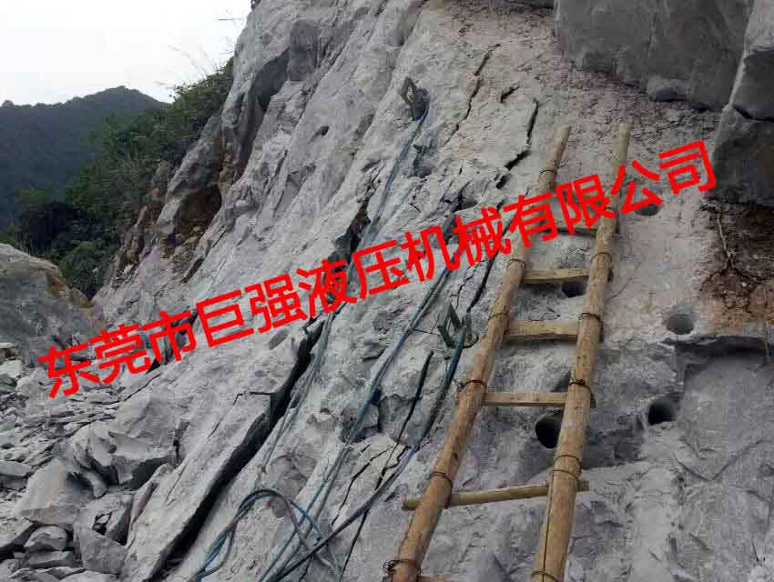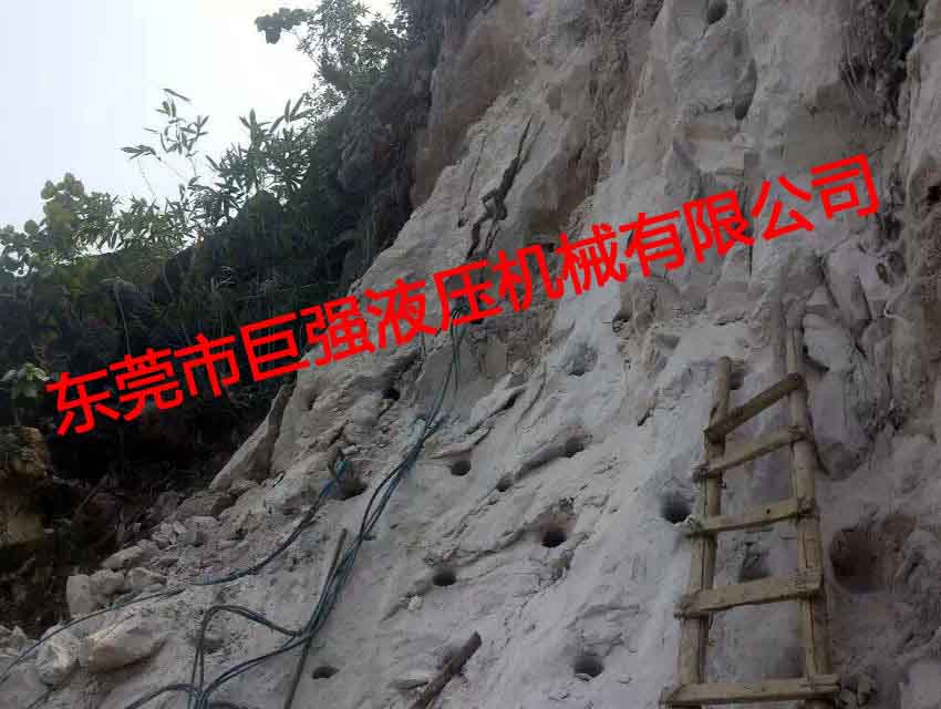 液压劈裂棒又叫岩石柱塞分裂器,岩石劈裂棒等,适用于大面积凿破岩石,是当下替代爆破药实现机械化大型开凿岩石的最新最高效破岩工具,它由高压泵站及劈裂机组成,压力120MPA,组合使用劈裂力达1200-1500吨,需钻孔90MM,深1M,放入劈裂棒劈裂时间2-5分钟,劈裂深度达1-3米,其棒子上分布11颗小千斤顶,可将岩石大面积分裂出来,液压劈裂棒特点:
