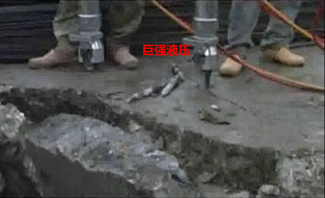 对于厚度大于10cm的钢筋网混凝土桥面,亦可采用劈裂机破除法,只是要缩小钻孔间距为20cm*20cm,打孔时向自由面略微倾斜,同时找到钢筋的自由端头,根据端头钢筋灵活确定布孔位置,清渣时还需要风镐协助。