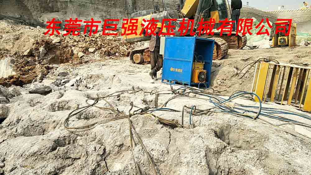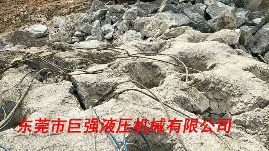 我公司研制的超大型液压劈裂棒是以高压液压油为能量源,应用了千斤顶的原理,使劈石作用力达到上千吨/条的劈裂力,用液压劈裂棒可以在数分钟内轻易地把巨石劈裂开,使坚硬的矿石从山体中分离。我公司生产的液压劈裂棒是开山劈石绝佳工具,它具有品质好,性能稳定,操作方便,工作效率高等特点。产品性能行业领先,应用于不能炸药爆破,工期紧、技术难度大、要求产量高的石方破碎工程。 东莞巨强液压公司长期专注于岩石分裂产品,长年面对大量不能炸药爆破的石方,行业逼迫我们必须要把石方破碎的成本降低、效率加快,才能赢得市场。开山破石就像切豆腐,超大型液压劈裂棒的钻孔直径25厘米(劈裂棒行业中直径最大),行距 (D) = 2~5米 ,孔距 (P) = 1~1.8米 ,挖机吊装放入岩石孔中,3分钟即可胀裂开石头几十个立方米,每天可轻松破碎坚硬岩石上千立方,并且强大到即使没有凌空面都能达到大间距、大裂缝的施工效果,这是在全球的劈裂棒、劈裂机行业都非常少有的。 东莞巨强液压人深知:科技创新引领发展,核心技术才是生产力,我们必须要研制出够强大的岩石分裂设备,才能降低成本、提高效益,才能在石方工程中具备核心竞争力,才能赢得客户的满意,才能在短时间内实现超越同行并处于行业领先地位。
