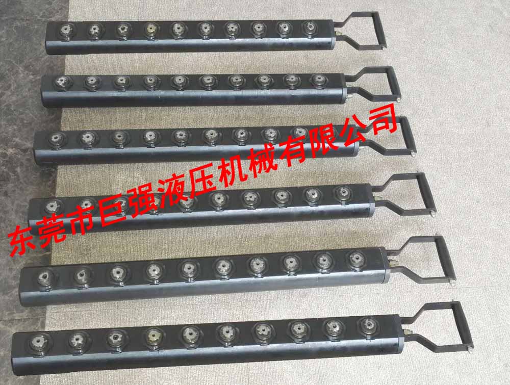 一套设备主要组成为:数条柱塞劈裂棒、一台液压动力站、一个运输架、一套高低压液压连接油管与分流器。