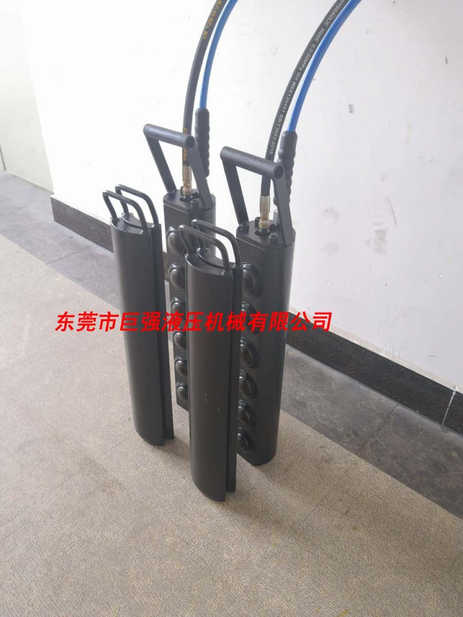 巨强液压劈裂棒设备简介: 由动力油站和柱塞劈裂棒两大部分组成,我公司采用超高强度钢,经真空热处理和其他顶级工艺制造,耐磨耐用! 一套设备主要组成为:数条柱塞劈裂棒、一台液压动力站、一个运输推车、一套高低压液压连接油管与分流器。
